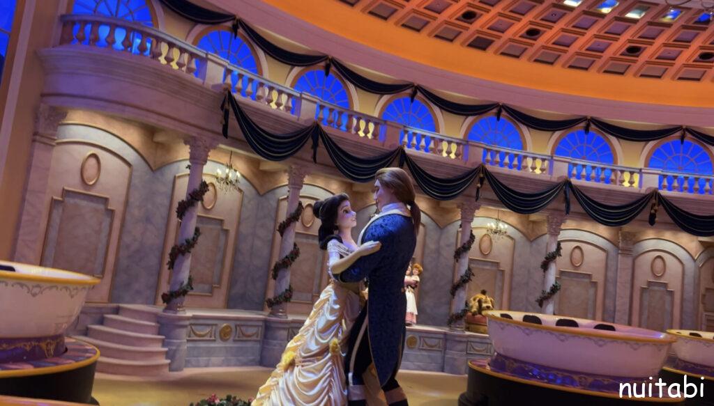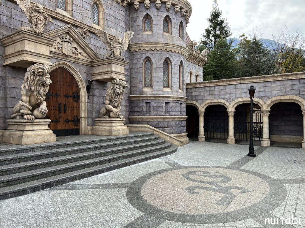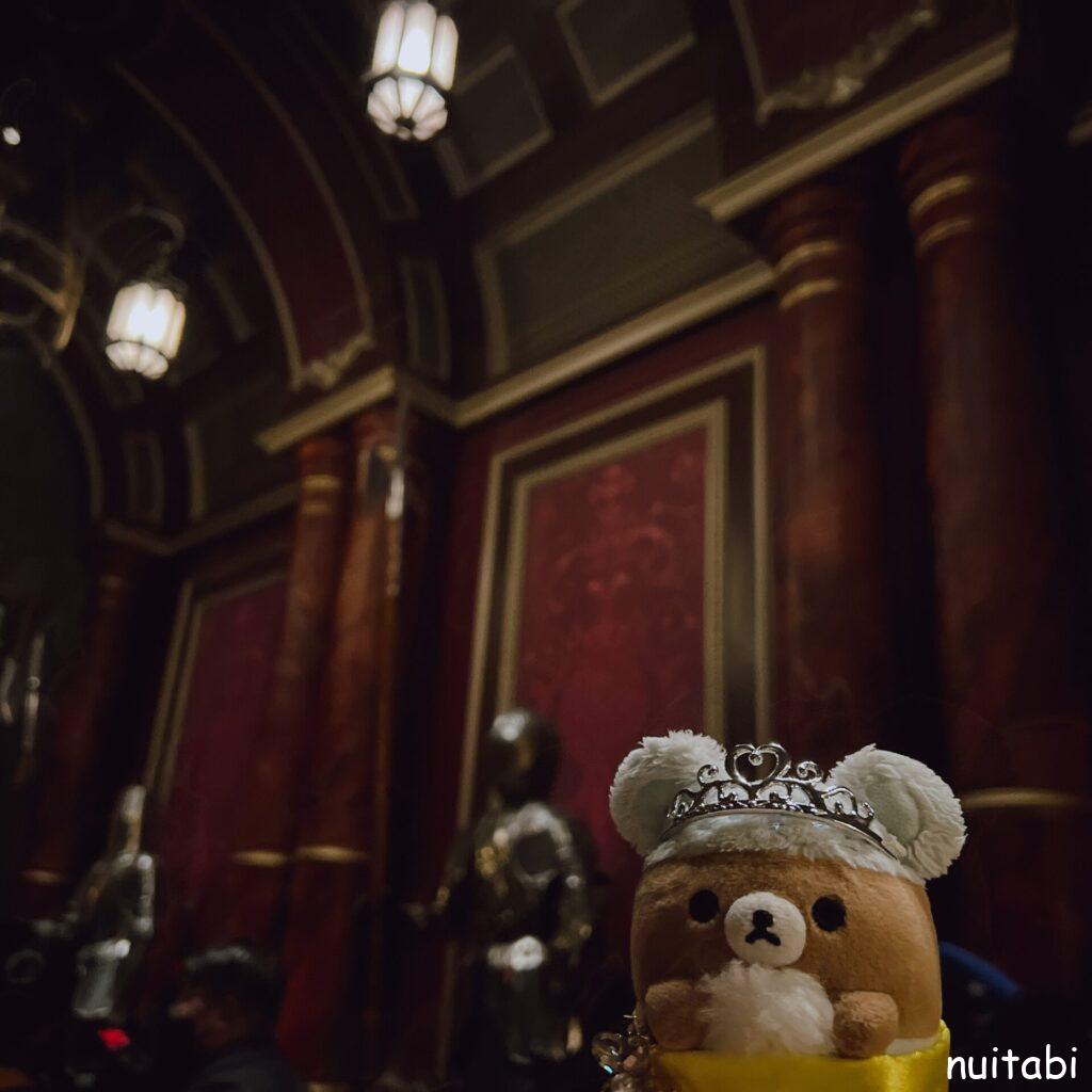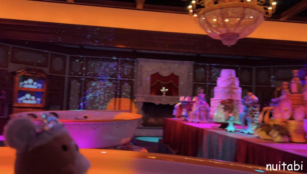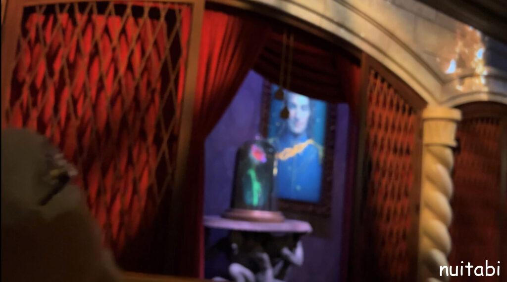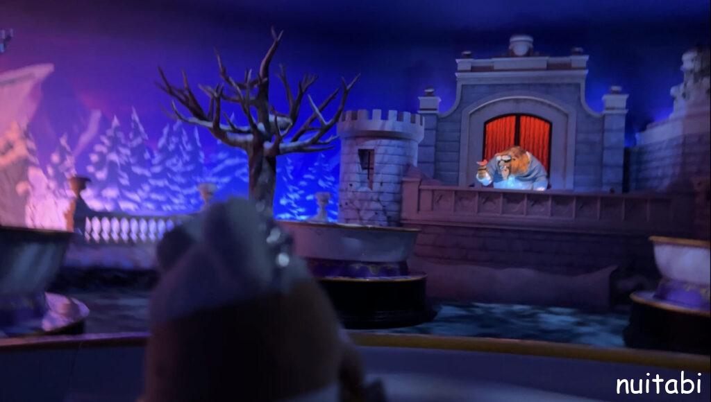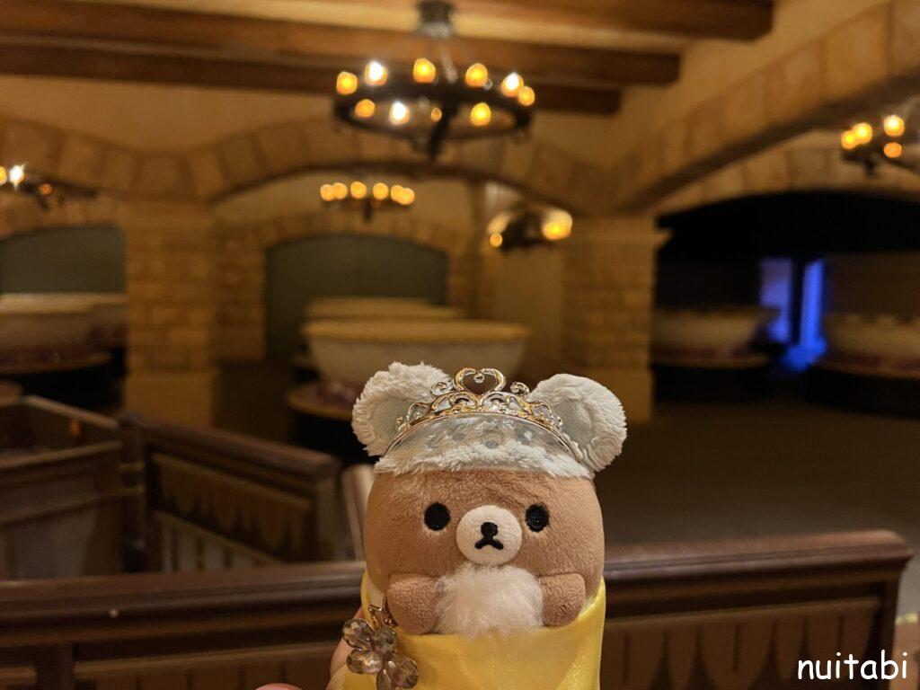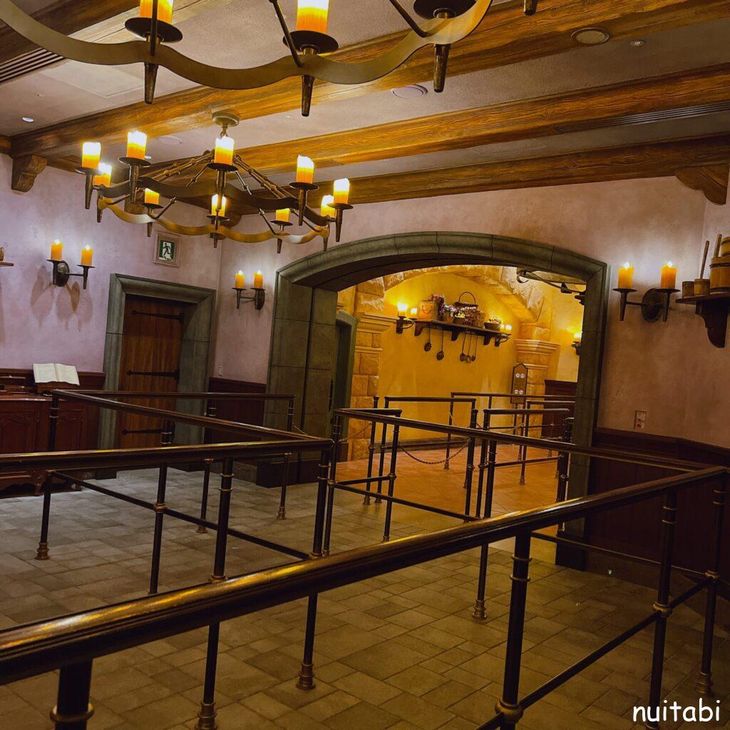 美女と野獣のアトラクションの並び列の奥側で、
