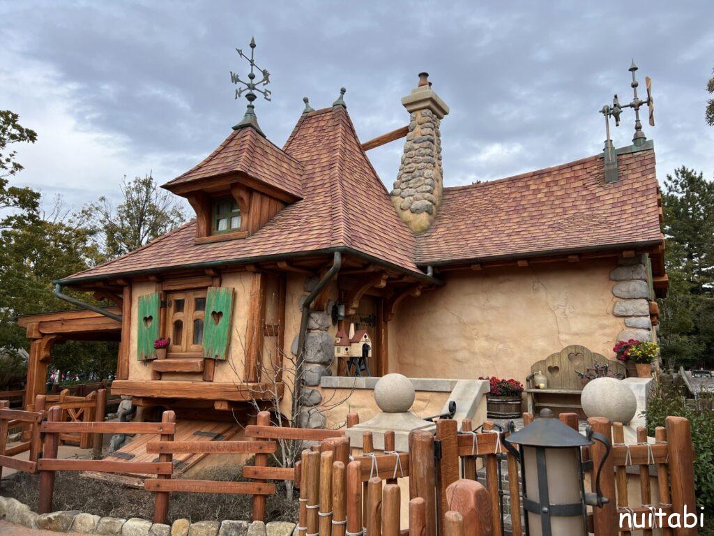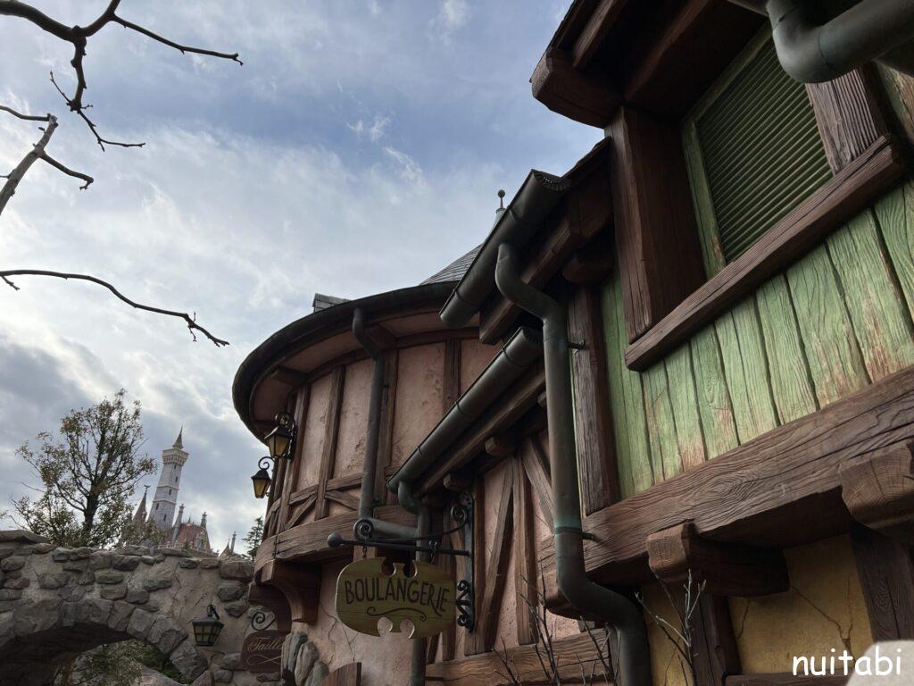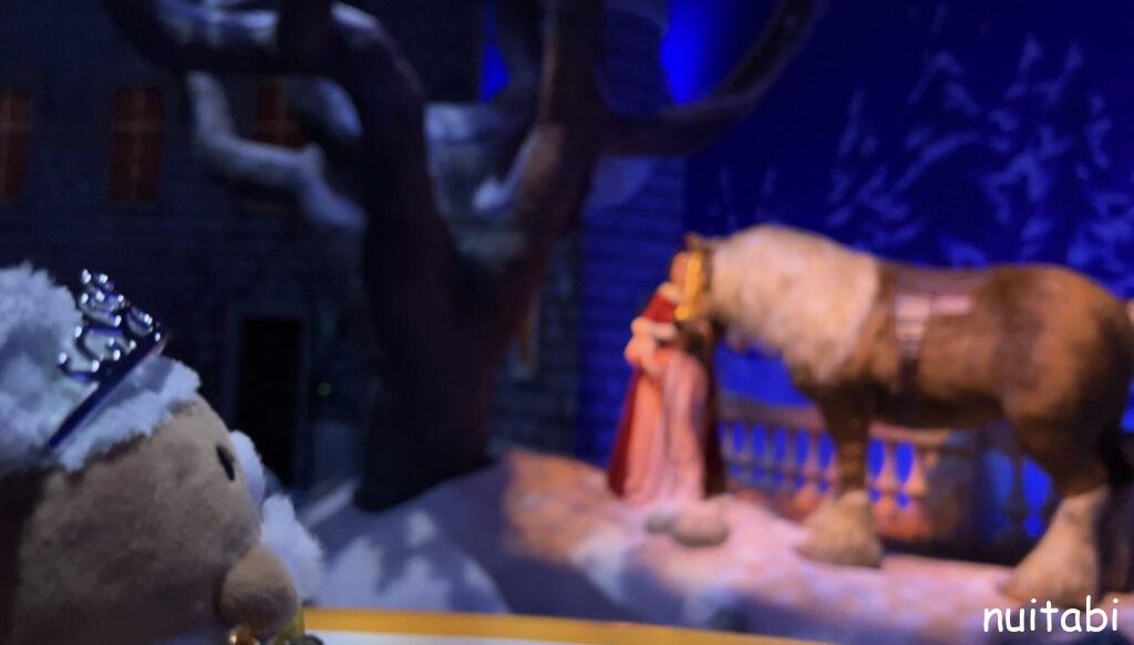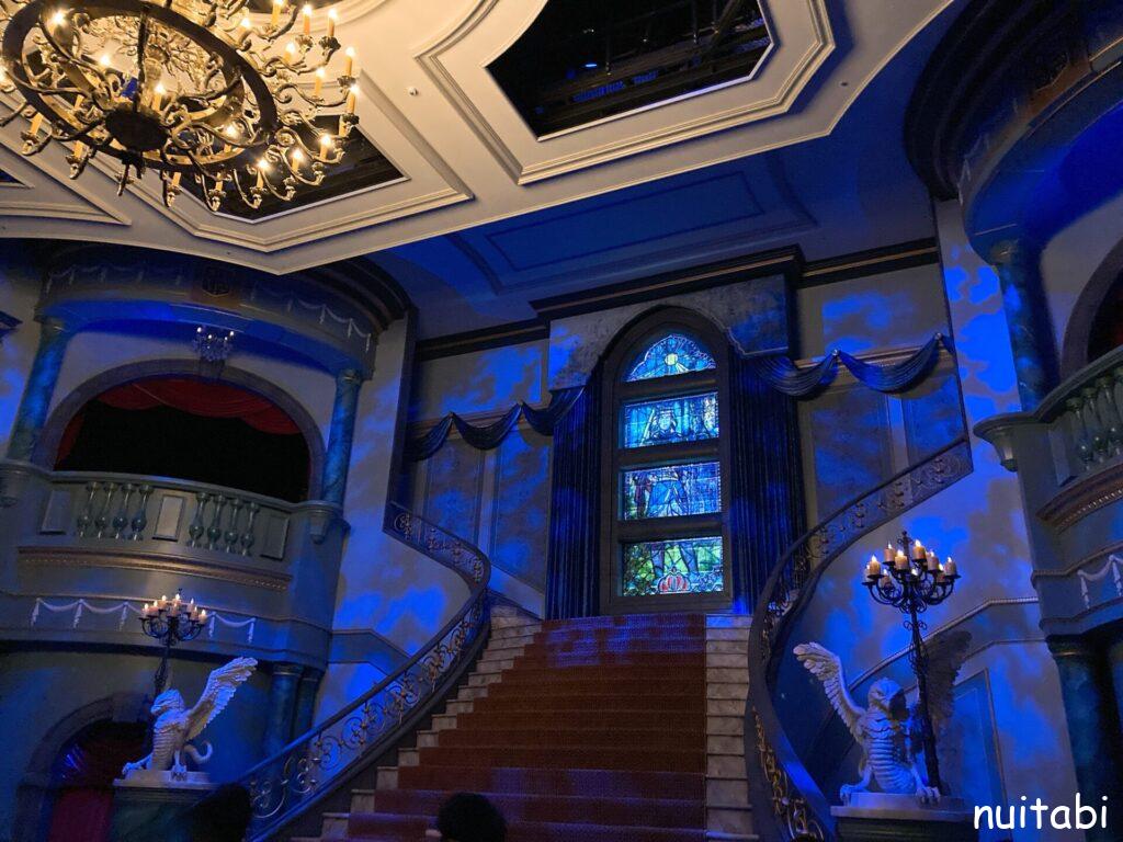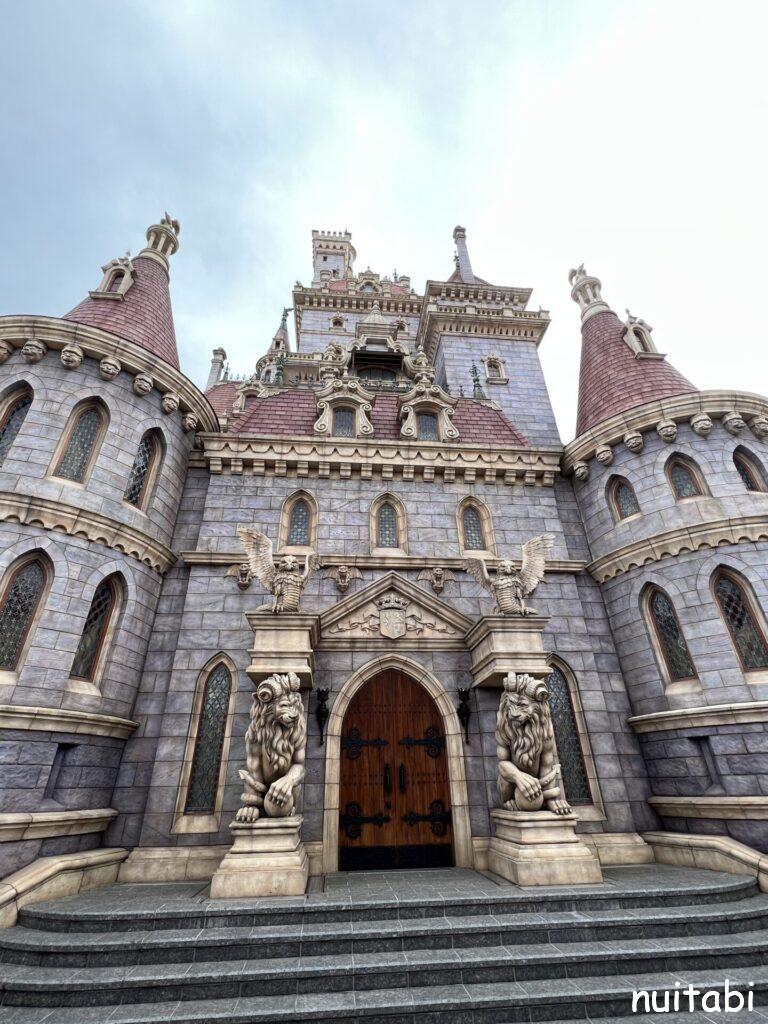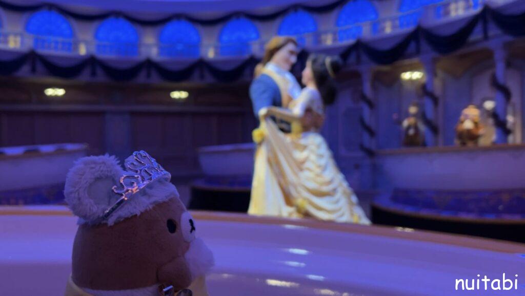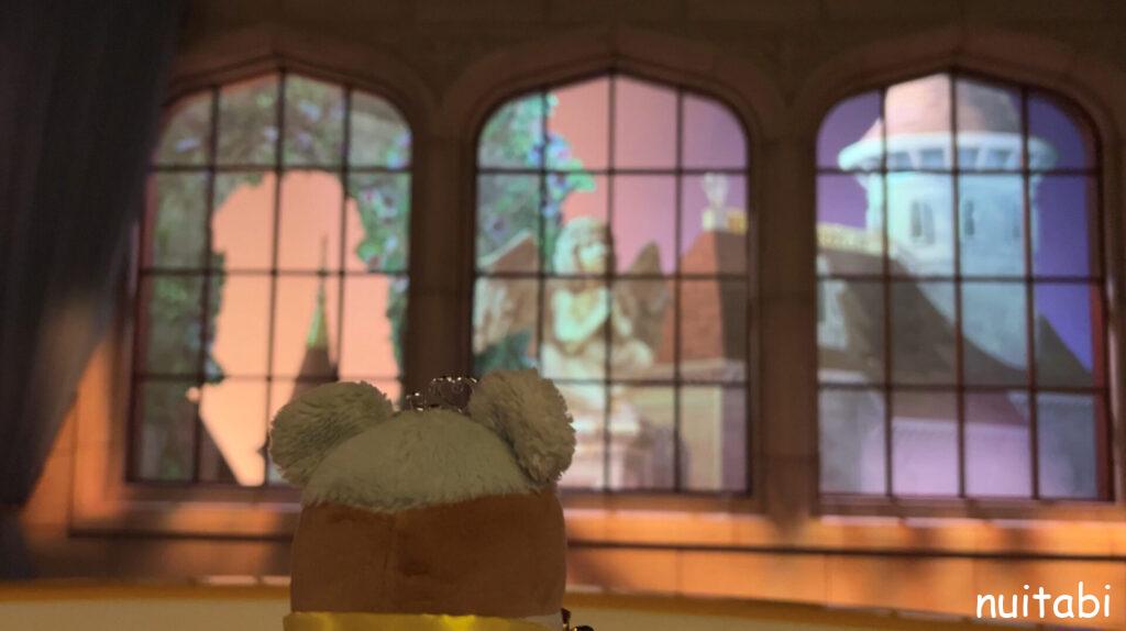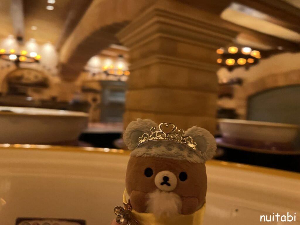 美女と野獣のアトラクションの並び列の奥側で、