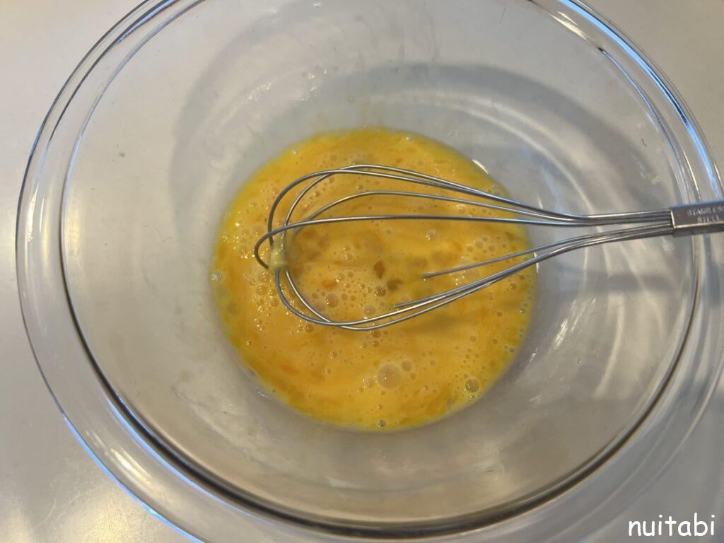 ①卵3つをときほぐします。