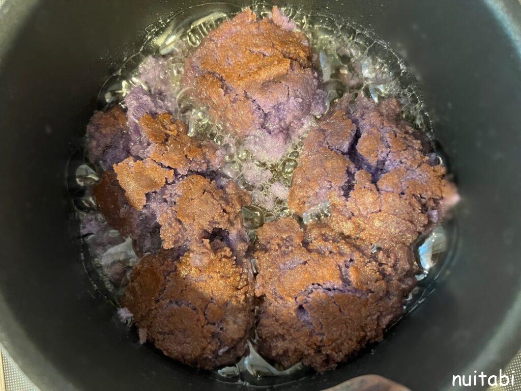 ③140℃の油にそっと入れます♪