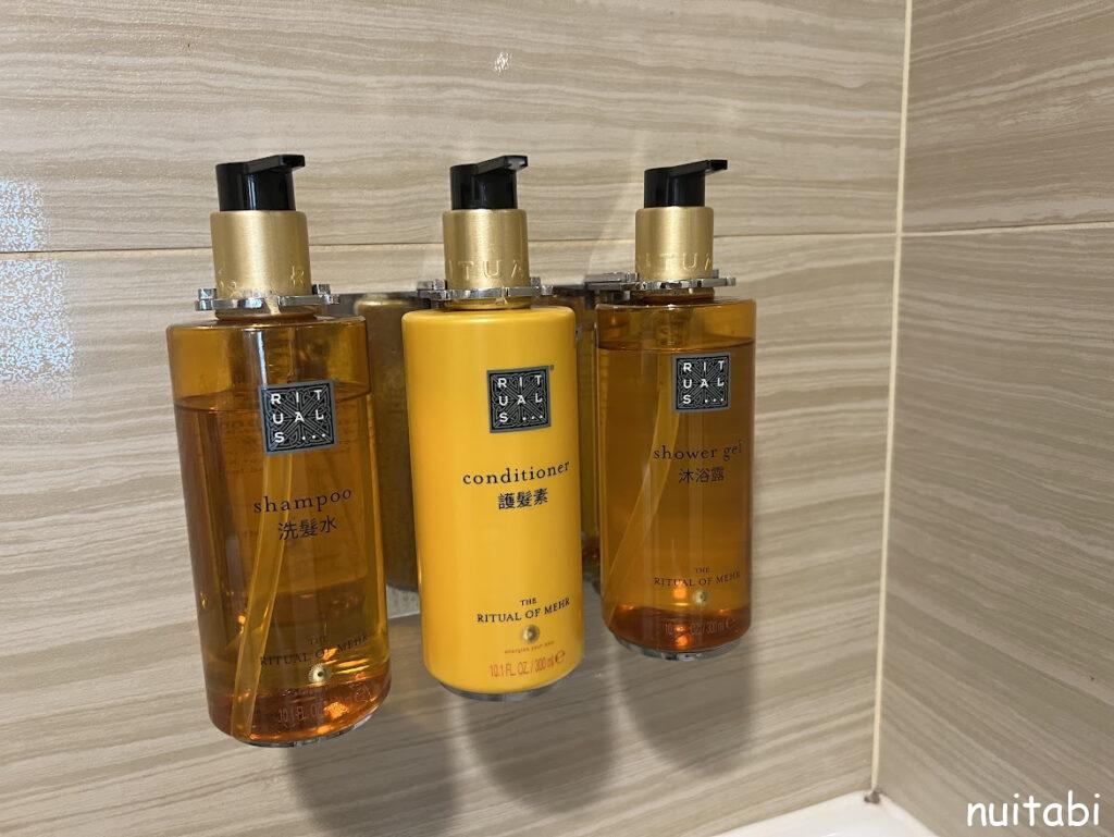 シャンプー、コンディショナー、ボディーソープは備え付け。