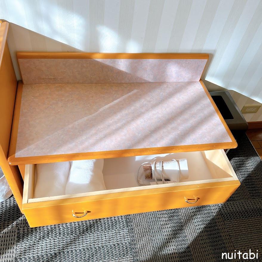 アメニティは自分で部屋に持って行きます。