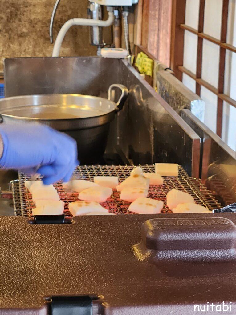 レジの奥で餅を焼いているのが見えます♪