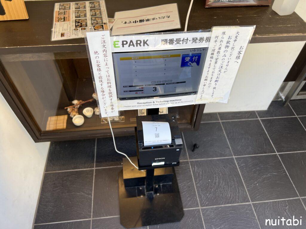 お店の前に、番号札があるので、