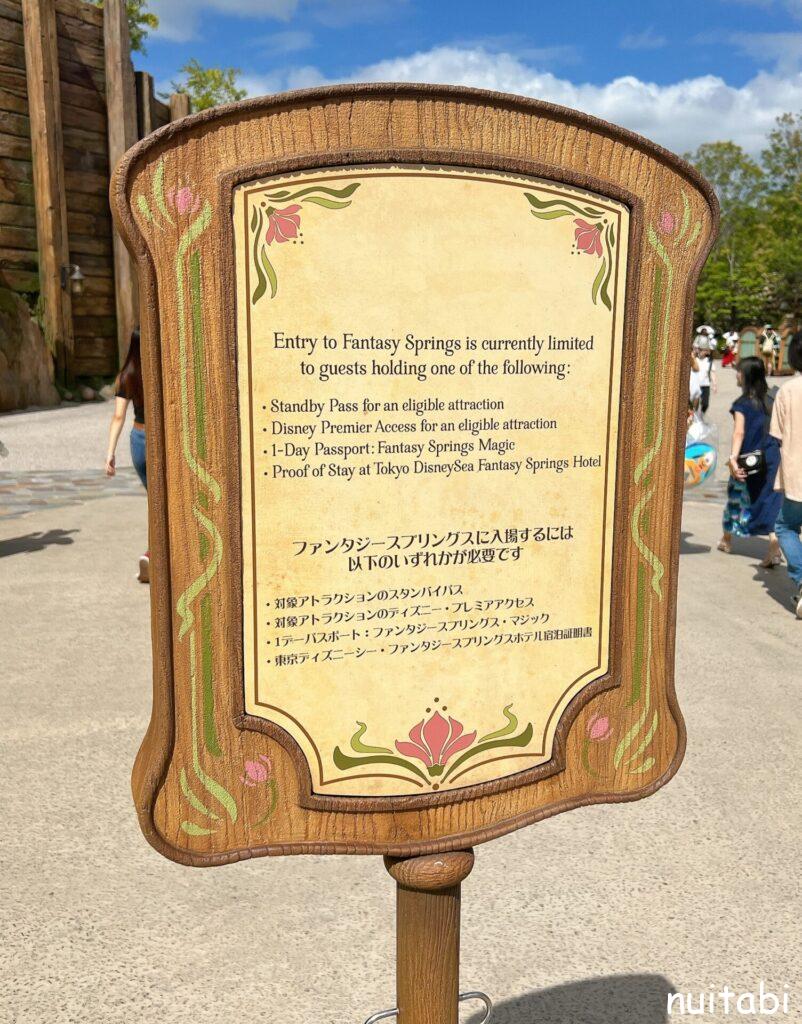 ファンタジースプリングスエリアに入るため、