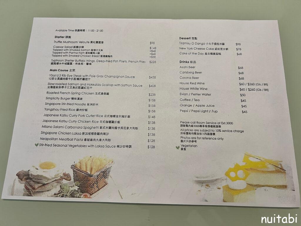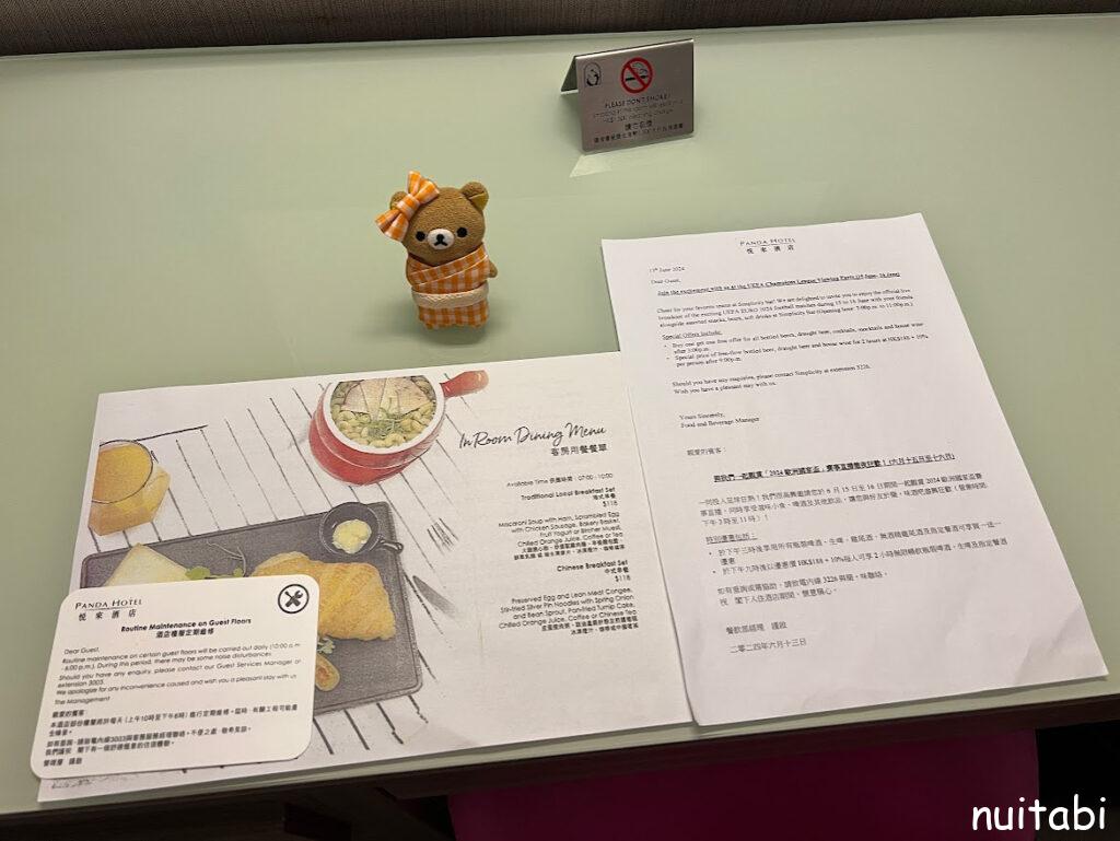 テーブルにはルームサービスの案内が置いてありました。