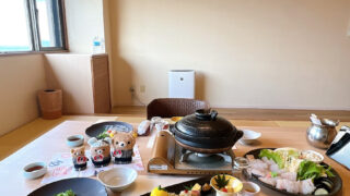 ※2025年2月の情報です。ホテルニューあわじのヴィラ楽園に宿泊した際、夕食・朝食はお部屋食でした♪